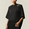Blusa de linhas puras e costas drapeadas, unindo estrutura e fluidez num equilíbrio autoral. A blusa Carola traduz a essência da linha Respiro ao unir forma escultural e leveza. O design apresenta frente limpa e geométrica em contraste com o drapeado profundo nas costas, construído em moulage para garantir caimento natural e movimento orgânico. O fechamento sutil na costas o refinamento técnico da peça, que se adapta com elegância a diferentes composições , do cotidiano sofisticado às produções noturnas.