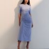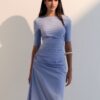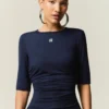 com recortes anatômicos e cintura marcada. O franzido frontal cria volume sutil, trazendo leveza visual sem