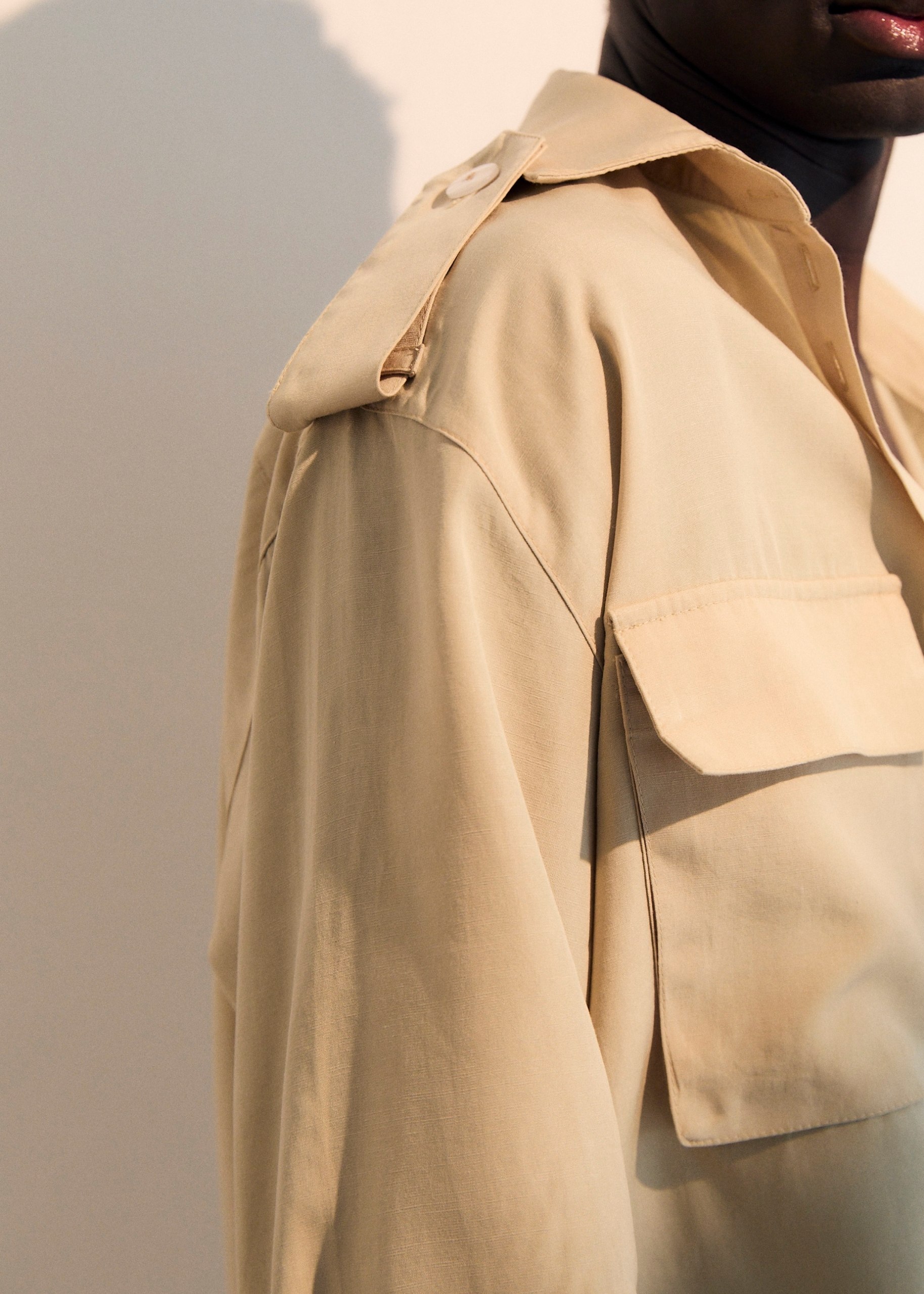 A Camisa Cáspia carrega a estética utilitária com suavidade autoral.