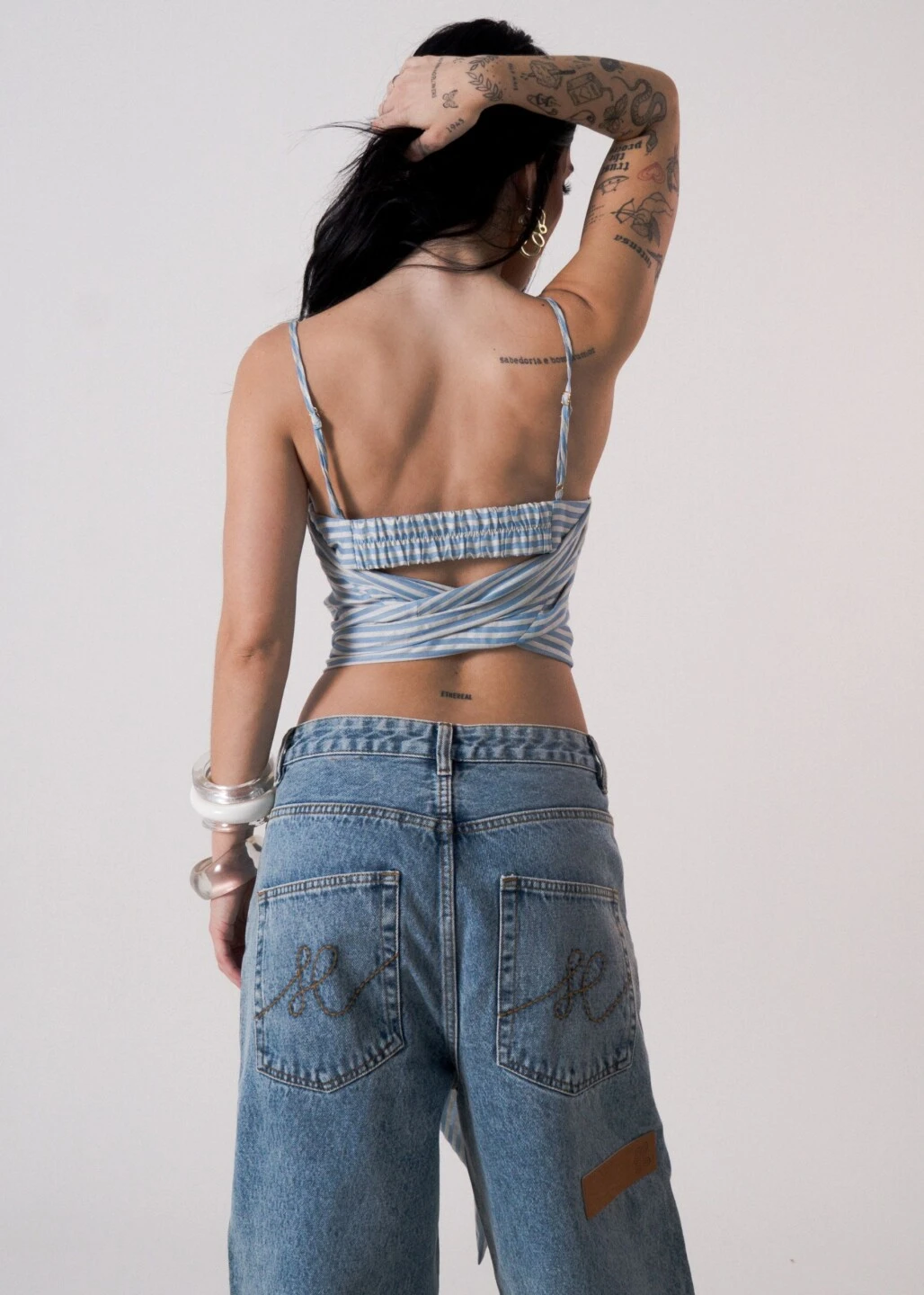 A etiqueta deslocada surge como ponto de tensão e assinatura: uma subversão sutil dos nossos próprios códigos, reafirmando que vestir Iury Costa é também questionar a forma, o lugar e o tempo.