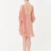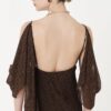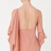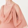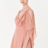 Drama sutil e domínio técnico. O Vestido Karolina é construído com drapeados que partem do decote em moulage, escorrendo pelos ombros de forma assimétrica — como um gesto que não se repete. O tecido de toque fluido e acabamento sofisticado possui certificações internacionais que atestam sua produção consciente. Internamente, o forro em poliamida com elastano garante segurança, conforto e sustentação sem interferir no desenho.