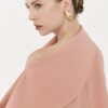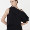 Estruturada como quem conhece seus contornos. A Blusa Petruvia nasce da alfaiataria, mas se move como escultura: sem excessos, só intenção. Alta densidade, costura pensada. É poder contido, minimalismo que sussurra e ainda assim comanda o espaço. Carrega na assimetria da manga a assinatura da coleção com botão de massa contrastante.