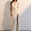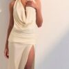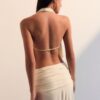 caimento da saia com precisão. A peça combina atitude escultórica com